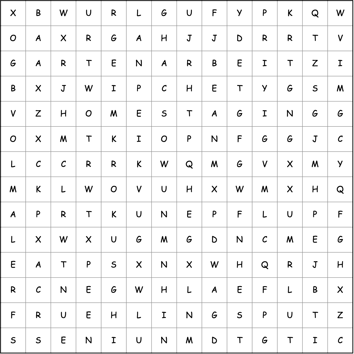 Finden Sie fünf versteckte Wörter im Buchstabenmeer. Als Hilfe erhalten Sie für jedes Wort eine kurze Beschreibung.